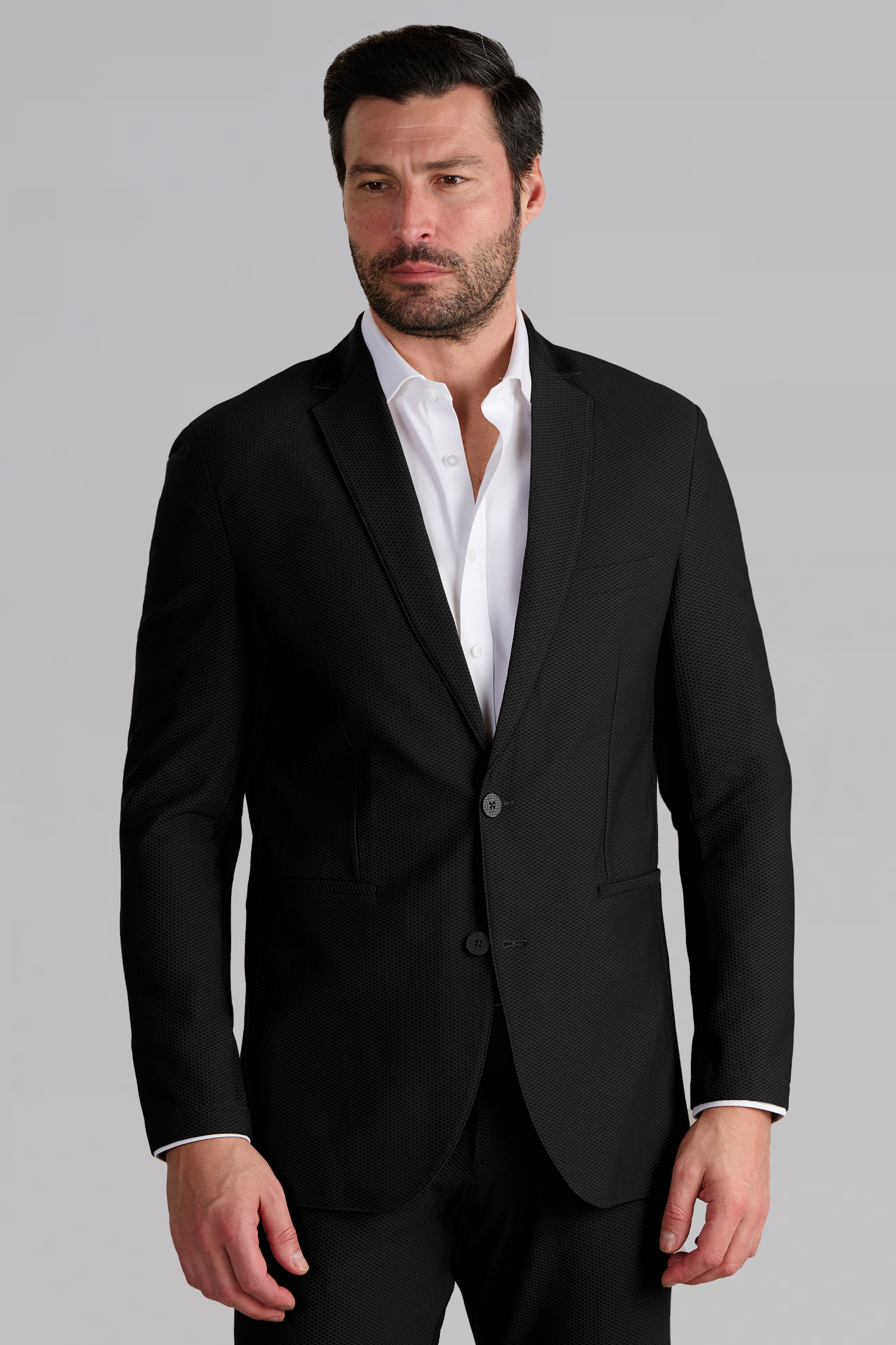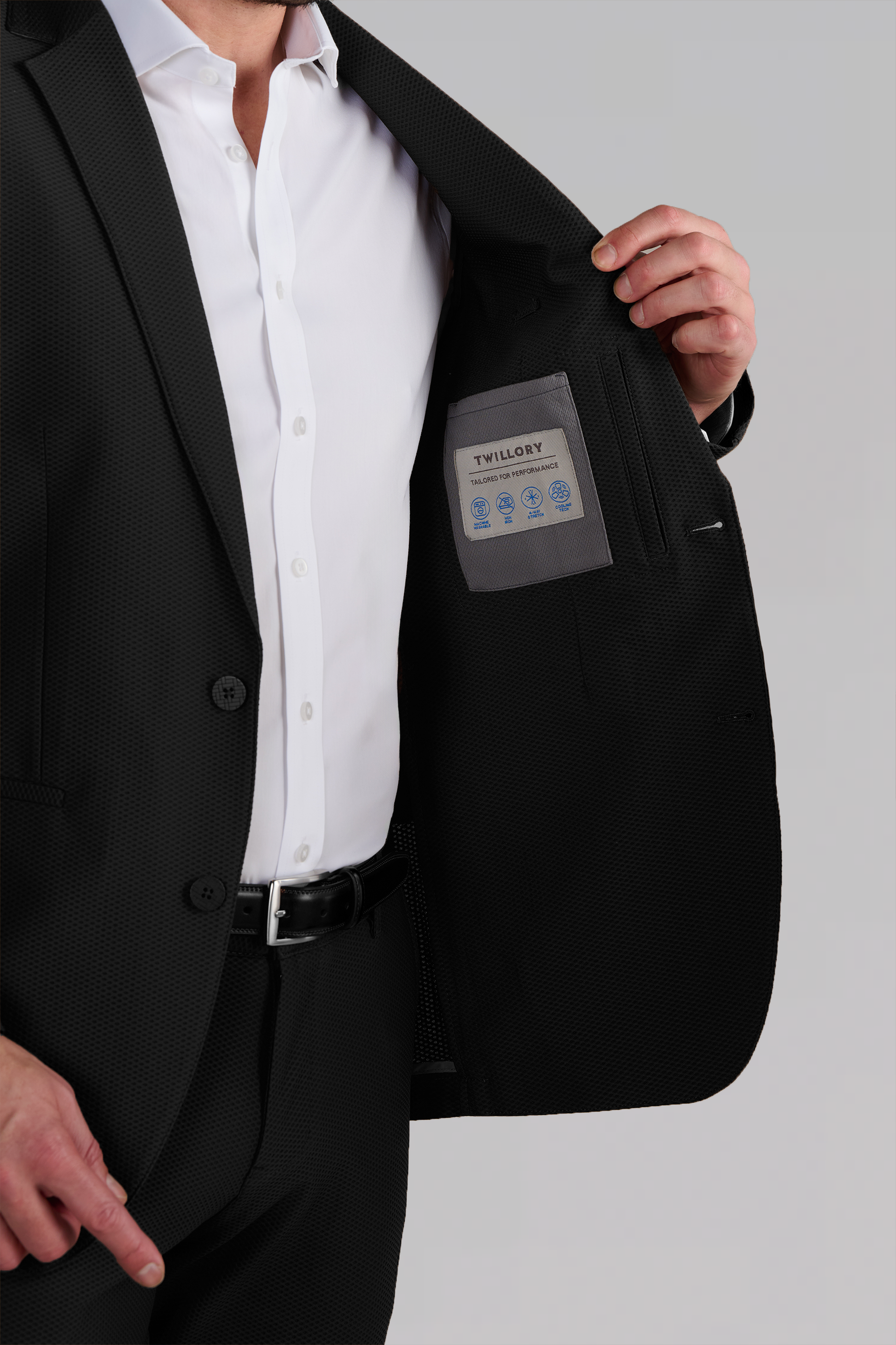 What's the problem with traditional suiting? The heat! We took the cooling mesh fabric that’s commonly found in sportswear, and upscaled and retailored it for use in The Air Suit. This breathable suit functions like all Twillory Suits and Blazers; extreme stretch and comfort, no wrinkles, plenty of pockets, and is machine washable. Don't be that dressed-up overheated dude with an overused sweaty tissue in your pocket - stay cool and airy in this black summer blazer all day long!