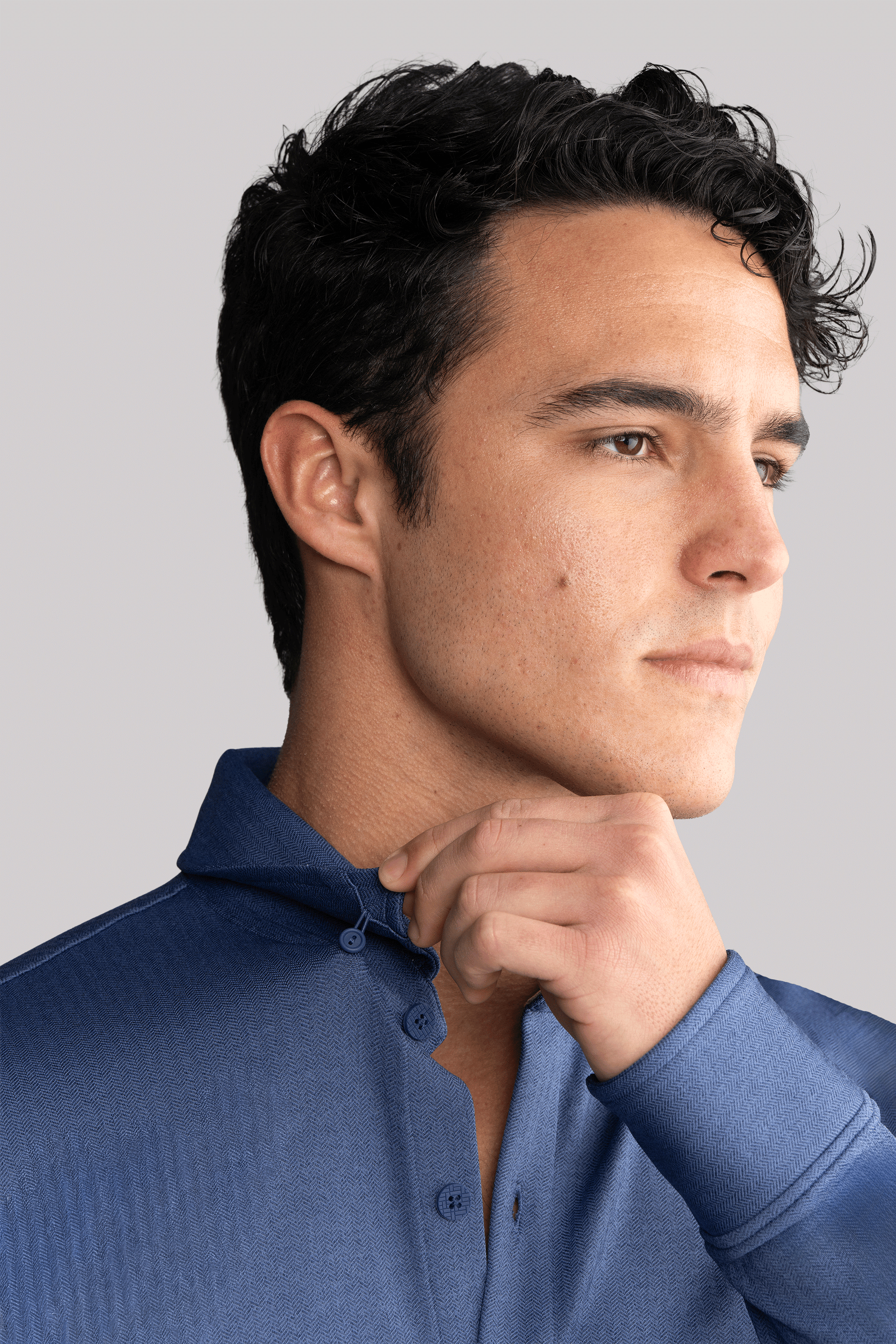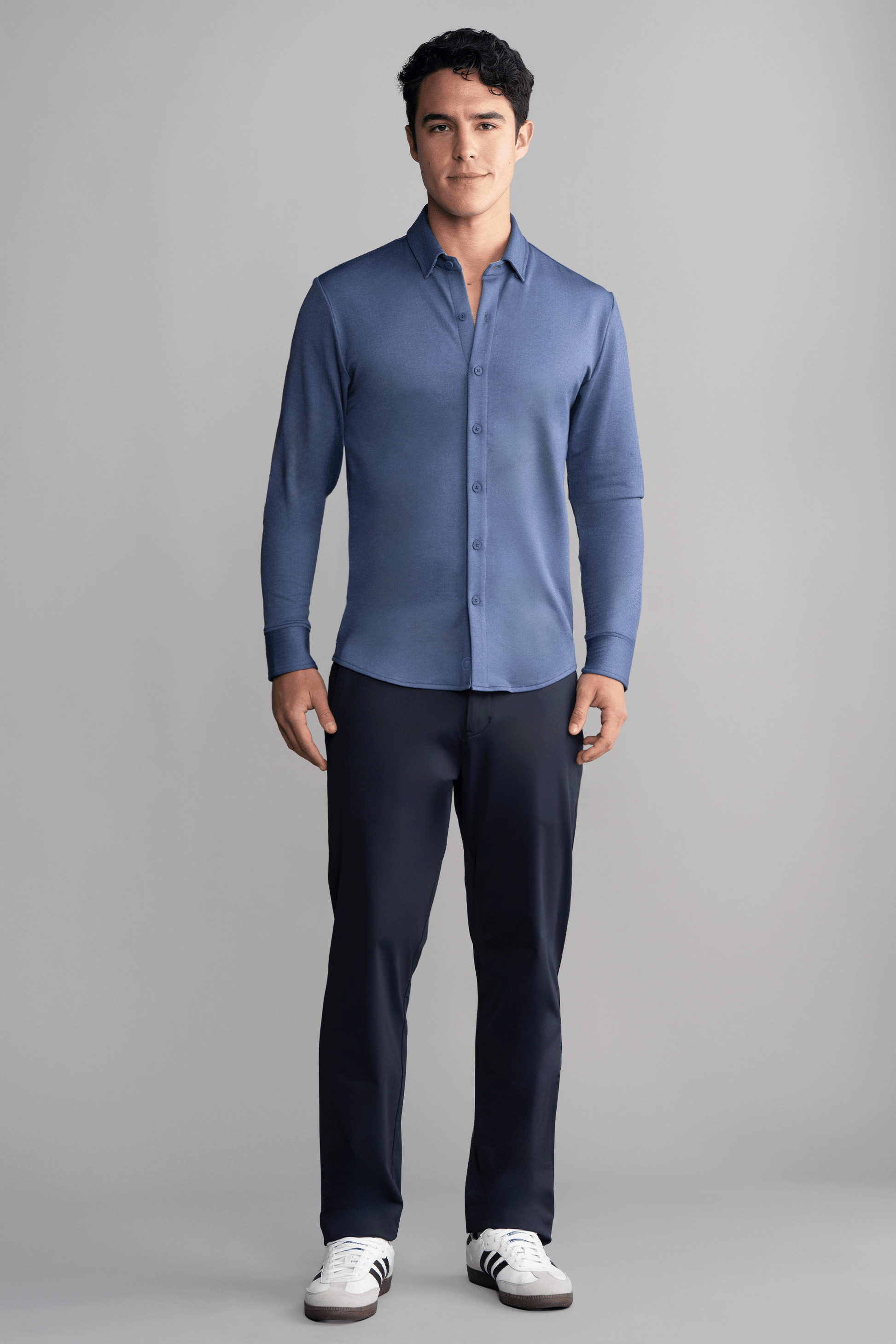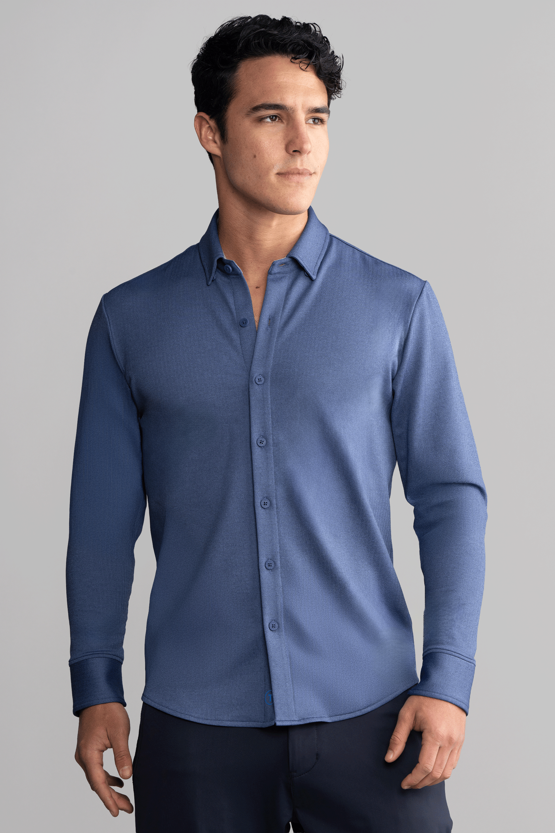 - Hidden button-down collar